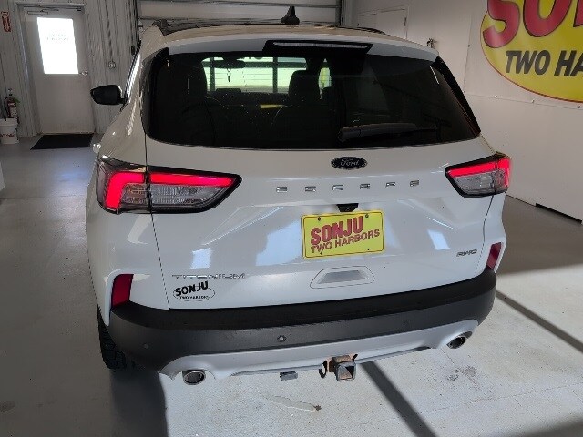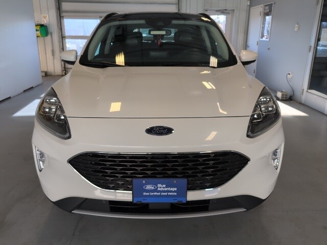 Certified. Star White Metallic Tri-Coat 2021 Ford Escape Titanium AWD 8-Speed Automatic EcoBoost 2.0L I4 GTDi DOHC Turbocharged VCT AWD.